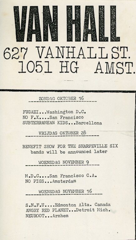 This gig took place at the Van Hall in Amsterdam, a squat that allegedly proved to be quite significant during the emergence of hardcore punk in Holland in the mid-eighties.