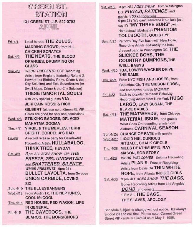 This was my first and last Fugazi show. Tiny, short lived venue, maybe 150 capacity. Some bonkers early shows at this place. Gwar, Nirvana, GG Allin (cancelled after he peed onstage durong soundcheck) HR, and of course FUGAZI. IIRC it was an afternoon all ages show. Amazing energy. Can't wait to download and see if I can remember what it was like to be there.