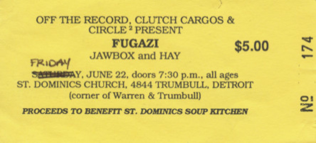 The power cut out a few times during this set-- I hope the tape deck was battery powered, since the crowd kept the songs going through the power outages. This was the first show I ever saw by any band.