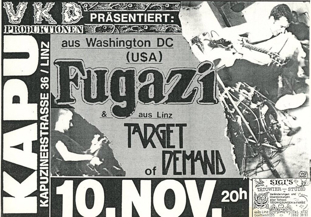 You have reached the only Fugazi stopover in Austria on the 1988 Euro tour. The place of choice is the Kapu, an urban cultural centre in Linz. More specifically, it is a meeting point that seems to have started out by promoting punk and hardcore shows in 1985.