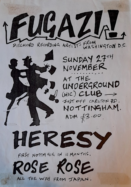 I can't find any trace of a club or venue that was called "Underground Hic". However, apparently there is a cave system underneath some streets in Nottingham, and there is a pub called The Angel at 7 Stoney Street that has an underground cellar and is a long-standing music venue. That is my buest guess. Was it there?