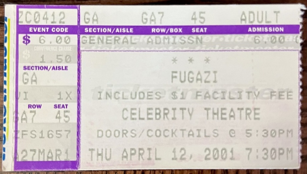 It had been nearly 10 years since I had seen Fugazi live. Two drummers. Ian stopping the show to deal with a knuckleheaded ruffian in the midst of the opening measures of Waiting Room. Classic! Great show!