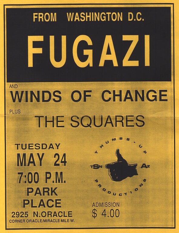 So if you are unmoved by a bit of a crumpled and tinny listening experience, and this gig speaks to you for some reason, you might still consider grabbing this one. I might add that it is the only gig played in the state of Arizona on the first US tour, as Fugazi is headed back home.