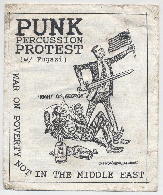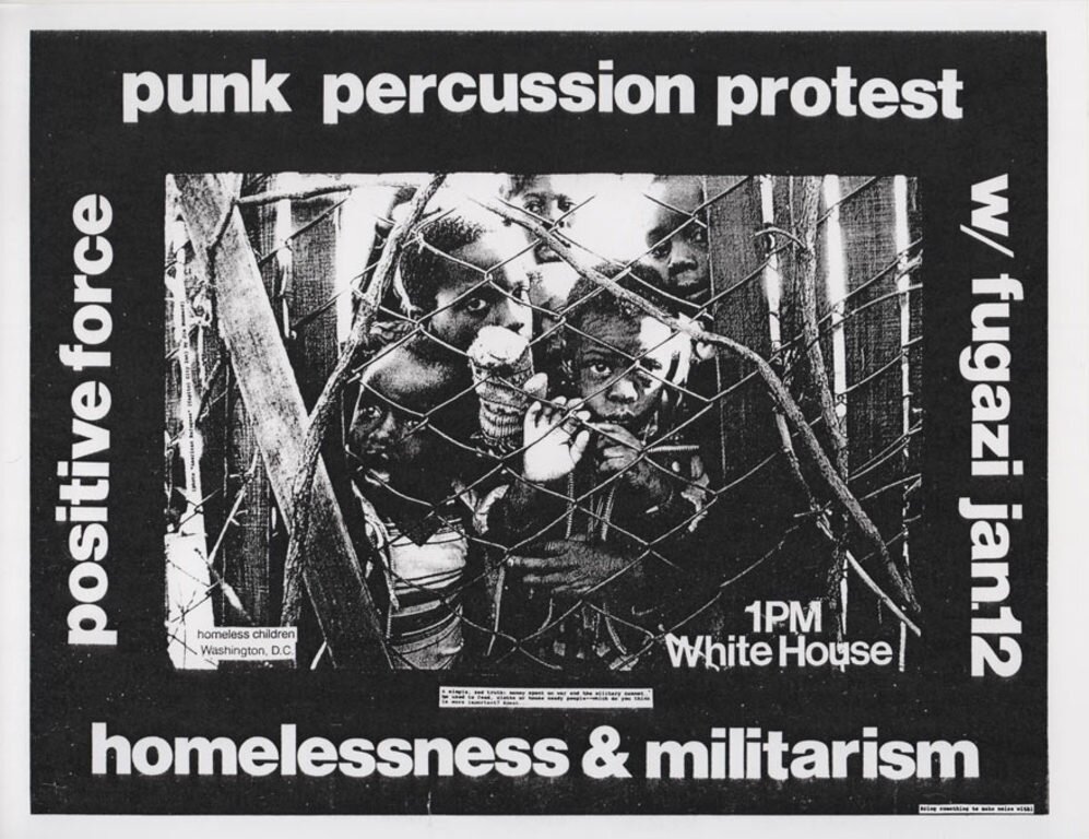 “Of the hundreds of raucous punk protest concerts organized by Positive Force, the enduring Washington DC youth activist collective, only one gave President George HW Bush insomnia and Fugazi near-frostbite. Called the Punk Percussion Protest and War On Poverty Not In the Middle East, the now-infamous demonstration was staged directly in front of the White House on 12 January 1991. Long planned as a multi-artist rally that would draw attention to homelessness in America, the event took a hairpin turn as Operation Desert Storm grew imminent.”