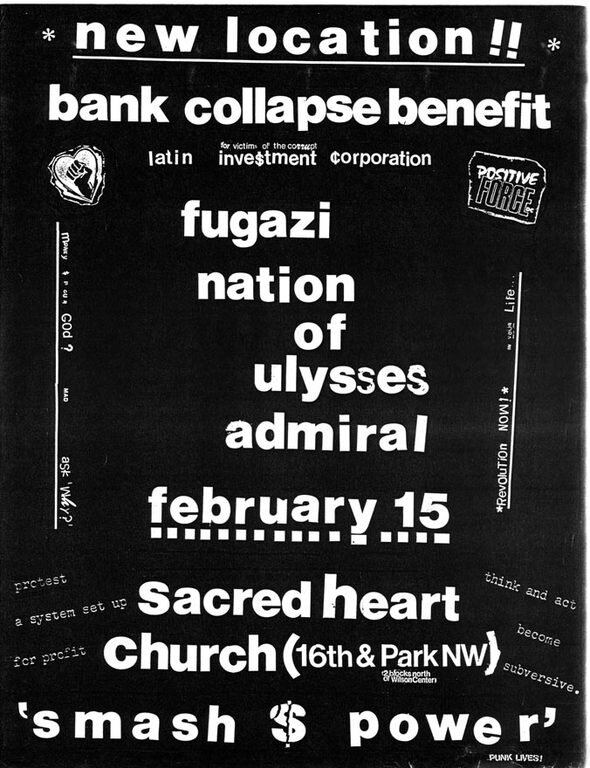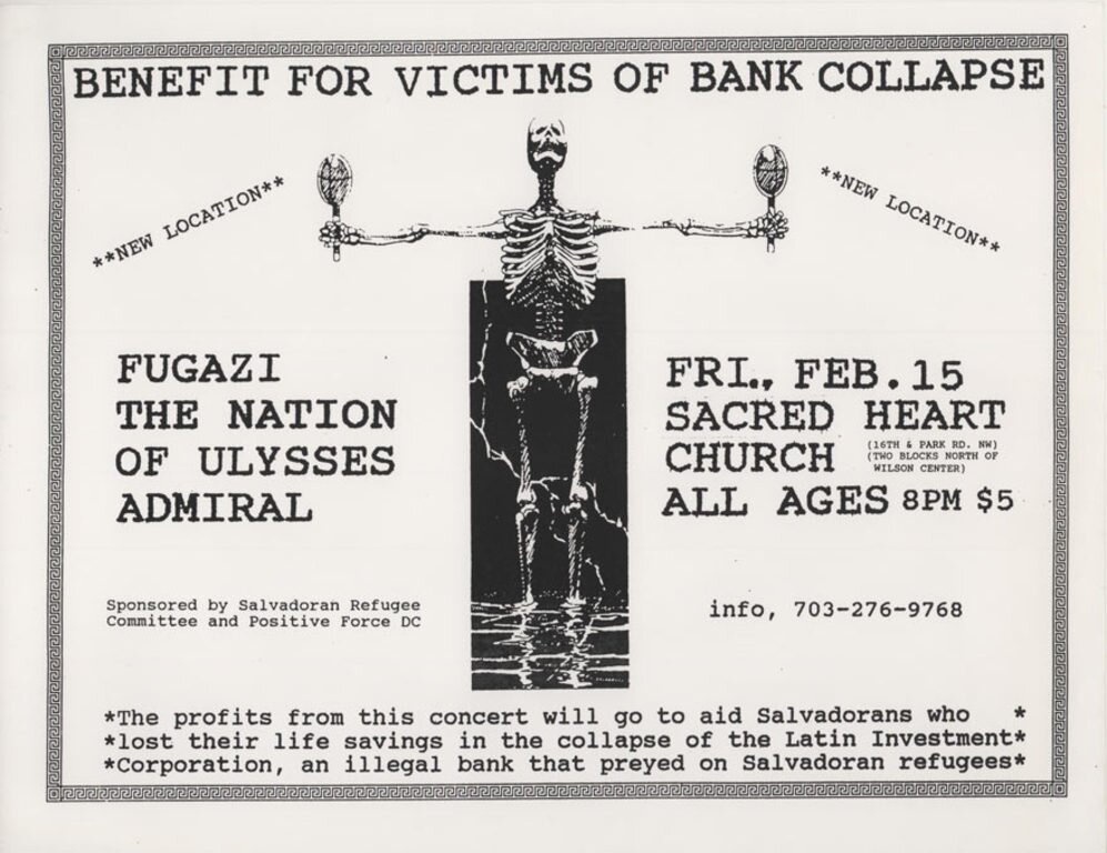 As noted earlier, Fugazi played the Sacred Heart Church Hall in D.C. four times over the years, with three of these occasions taking place in 1991. This is the first of these recordings, a concert put together by Positive Force following the collapse of the Latino Investment Corporation - “a ‘bank’, kind of, that was set up for El Salvadoran immigrants and El Salvadoran people” - in an attempt to benefit the needs of “a lot of people who were working and saving up their money to send home to their families who put their money into this Latino Investment Corporation, as it turned out it wasn’t really a bank, and it wasn’t really insured, it wasn’t anything, and one day it was gone, and so was all their money.”