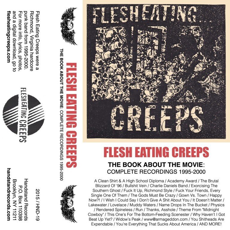 Flesh Eating Creeps were a 1990s Richmond, Virginia hardcore punk band whose members went on to form the bands Brainworms, City Of Caterpillar, Light The Fuse And Run, and Municipal Waste. The two constant members -- Chris Terry and Brendan Trache -- worked with Handstand Records to digitize vinyl and tape recordings, scan photos and flyers, and compile as much information as possible for this comprehensive, 58-song discography that includes deluxe and standard cassette releases.